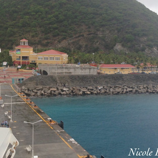 I was then asked to go out again without the board as this time I was going to be getting a ride along the water while holding onto Gaya's fin. However, when I tapped on the water he didn't appear and when I turned to look for him he was playing with another female dolphin Jaya. I had to wait for Jaya to disappear before I could get Gaya's attention again and for him to perform the water ride. When our group had finished we had time to sunbath on the beach while we waited on the other group. Everyone then headed back to the bus as we were being taken to a small cafe next to the port to have food before going back to St Maarten. Finally when we arrived back on St Maarten we met up with my dad at the port who was watching the world cup which was being played on a big TV screen beside the ship.